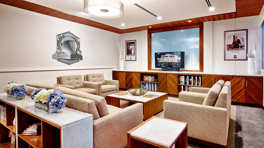 Anteriormente un edificio funcional anexado a los edificios de diseño de Art Deco de 1928 del Hospital Cedros del Líbano diseñados por Claud Beelman, la reconstrucción masiva comenzó en noviembre de 2009 y comprende nuevas paredes, nuevos techos y acabados, así como los muebles construidos en nuestra propias instalaciones y fabricados con el estilo innovador de la Iglesia con madera y mármol importado de Italia.