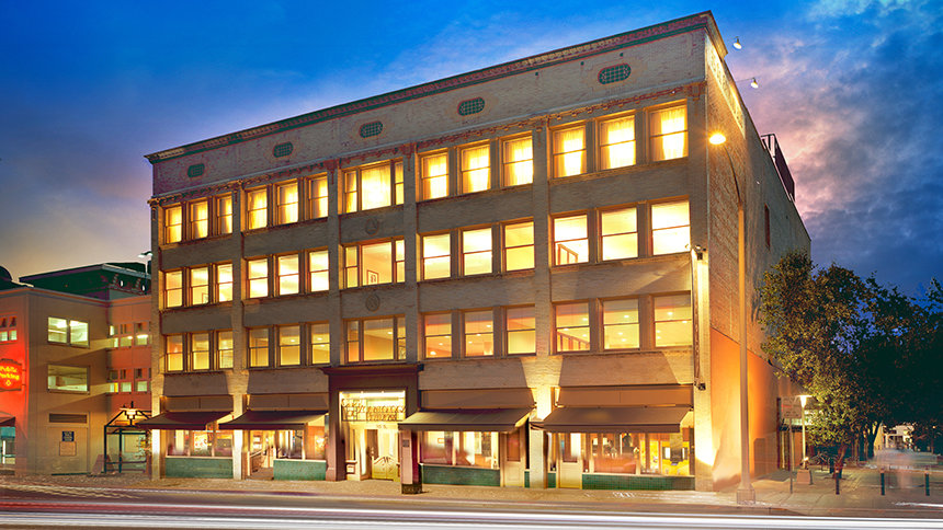 Localizada en uno de los distritos más transitados del Área Mayor de Los Ángeles, este monumento de finales del siglo XIX se ha preservado dentro de una mezcla única de lo antiguo y lo moderno. Su herencia se refleja en su restaurado diseño exterior de arquitectura de Bellas Artes, su clásica galería de cuatro pisos con claraboya, al igual que su mobiliario y sus ventanas de vidrios de colores al estilo Arts and Crafts (literalmente, Artes y oficios, conocido también como Modernismo).