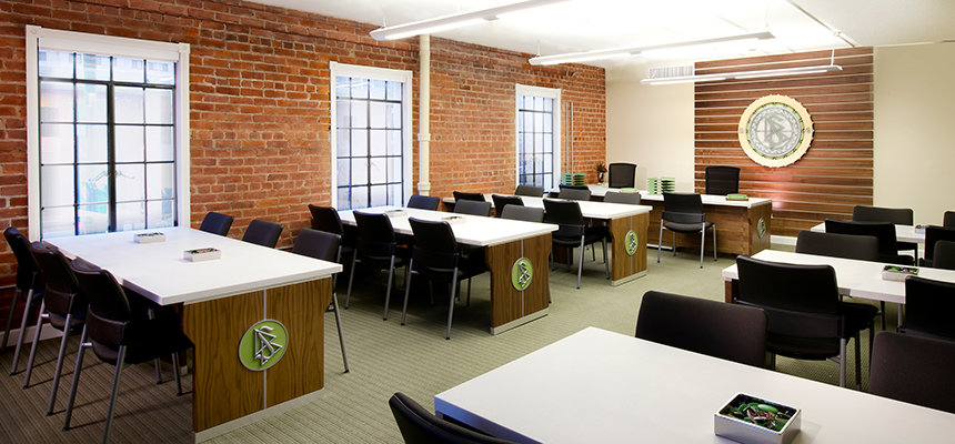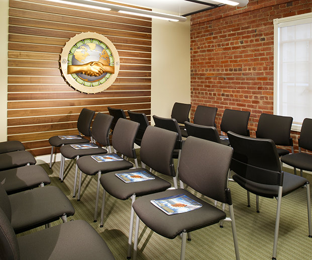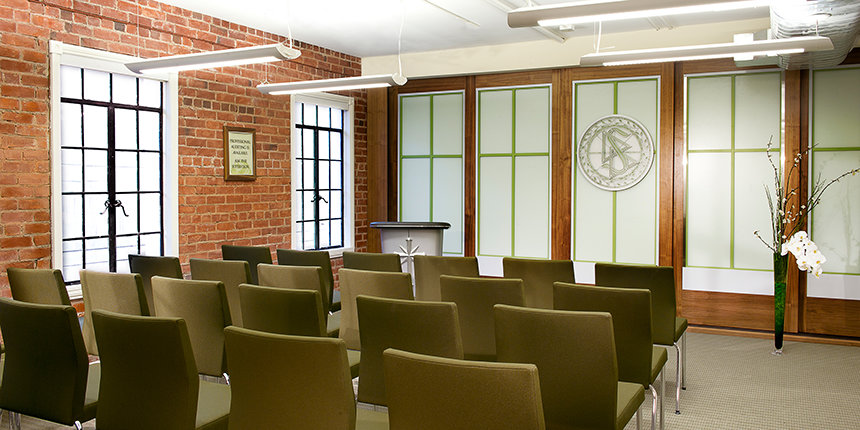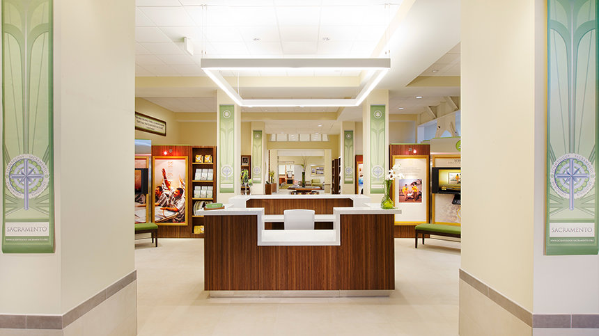 El nuevo hogar de la Iglesia, ubicado a unas cuadras del Capitolio Estatal, es uno de los edificios históricos más prominentes de la ciudad. Inaugurado originalmente en 1930 como el Hotel Ramona y diseñado por el primer arquitecto del estado de California, el edificio es el ejemplo existente más fino del estilo de Revival Español Colonial. La Iglesia meticulosamente preservó la estructura del edificio y restauró sus características a su gloria original, incluyendo el característico estuco, ladrillo glaseado ornamental, mosaico de terracota, acentos decorativos de hierro y el signo original en forma de espada. Toda la restauración fue planificada y ejecutada para tener el impacto ambiental mínimo y la máxima sustentabilidad, cumpliendo los estándares dorados de diseño del Consejo de Liderazgo de Edificio Verde (LEED).