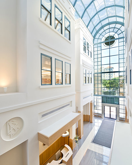 Con una restauración meticulosa, la Iglesia ha preservado las características originales del Edificio Coachman, incluyendo su distintiva fachada de ladrillo, su diseño de aparejo flamenco y sus ménsulas arqueadas en los pisos superiores.
