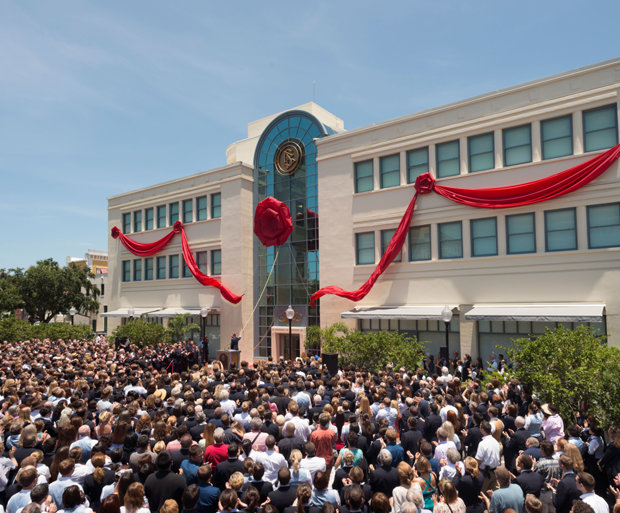 Más de 4.000 scientologists se reunieron en el centro de Clearwater, Florida, el domingo 29 de junio, para celebrar la inauguración del emblemático Edificio Coachman. La estructura histórica se encuentra ahora transformada, como el centro de asesoramiento y entrenamiento religiosos para los más de 2.000 miembros que comprende el ministerio eclesiástico de la Base en Tierra de Flag, la sede espiritual internacional de Scientology.