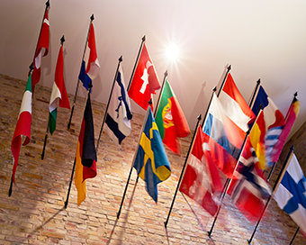 Los colores de más de 30 naciones de Europa ondeando en la brisa invernal danesa...
