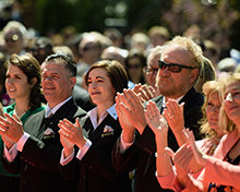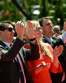 “A lo que nos estamos dedicando hoy es un mayor propósito, a una tarea para transformar el mañana para mejorarlo”, dijo el Sr. Johnson. “Así que vamos a andar juntos en el camino hacia la verdadera libertad. Y vamos a agradecer a L. Ronald Hubbard por su proyecto original para vivir”.