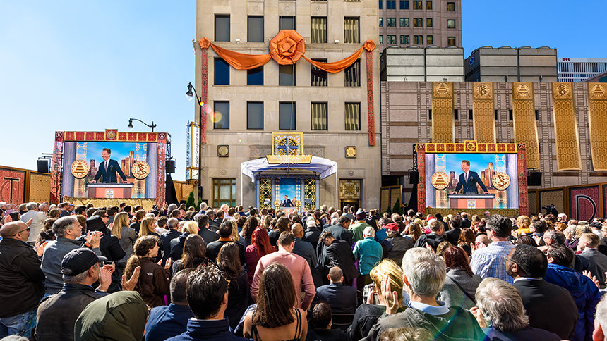 El telón de fondo de la gran celebración era la Iglesia de Scientology de ocho pisos justo al este del rascacielos del 150 West Jefferson y directamente del otro lado de la Hart Plaza de Detroit. La ubicación es una verdadera piedra angular: es lugar del primer edificio en Fort Pontchartrain, que más tarde se transformaría en la ciudad de Detroit. Mientras, para añadir más significado a la historia, ese edificio inaugural también fue la primera iglesia de la ciudad, construida en 1701.