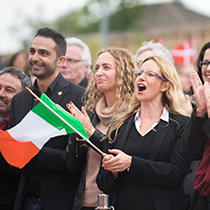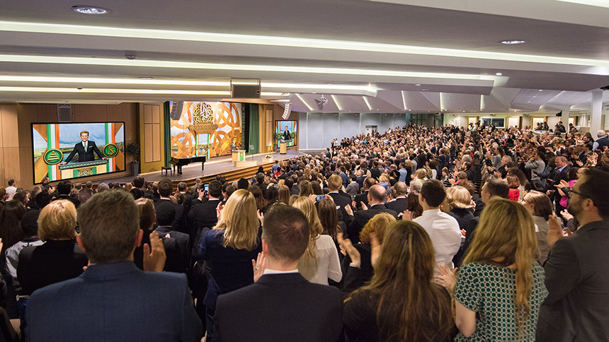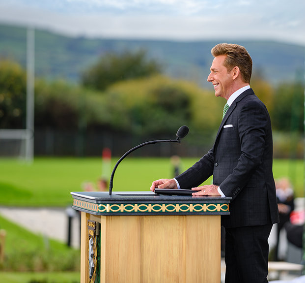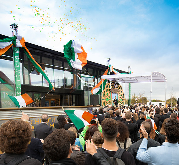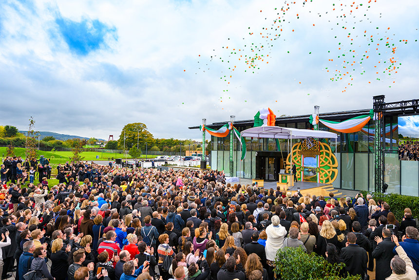 “Hoy cumplimos con la promesa de honrar una tierra que nuestro Fundador, L. Ronald Hubbard, quiso tanto, y a un pueblo que él describió como maravillosamente amistoso, incluso cuando el clima algunas veces no lo es”, dijo el Sr. David Miscavige, líder eclesiástico de la religión de Scientology, a la multitud reunida. “Y si eso no lo explica todo, permítanme citar entonces de su propio Sr. Yeats: ‘El hombre vive y muere muchas veces entre sus dos eternidades…, y la vieja Irlanda lo sabía’”.