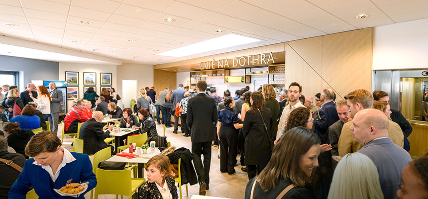Enfatizando las oportunidades que se crean al transformar un lugar abandonado en un revitalizado centro para la comunidad local, dignatarios locales y de la ciudad honraron el compañerismo y el espíritu de la ocasión. Estos incluyeron a: la Sra. Nicola Keating, activista antidrogas de Tallaght, la Sra. Amina Mustafa Keogh, directora del Programa de Deportes Contra el Racismo; y el Sr. Philip Cummings, poeta y traductor galardonado.