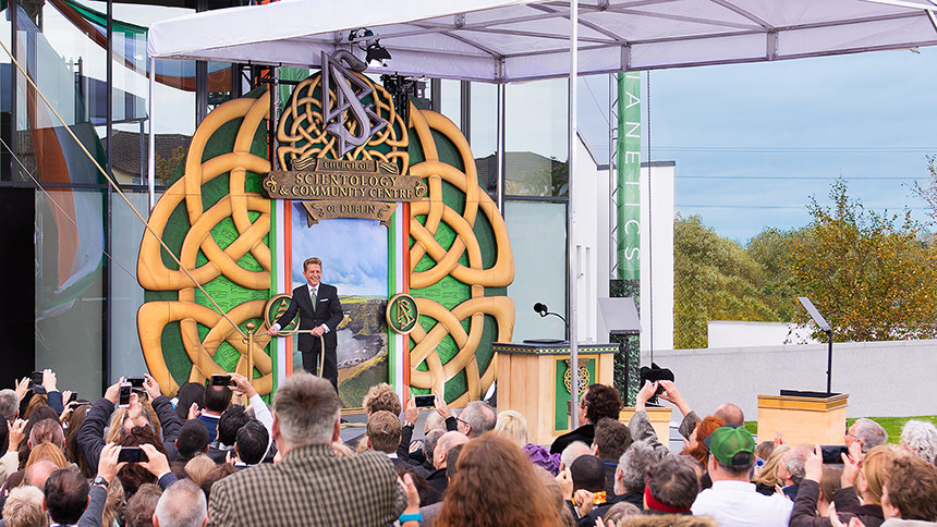 “Así que para Irlanda eterna, Irlanda trascendental: Mantuviste viva la literatura durante 500 años. Construiste América, y posiblemente incluso la descubriste. Enseñaste a la Humanidad lo que es la igualdad y cómo vivir con dignidad en su ausencia. Y, nos enseñaste que no existe un recurso tan valioso como la belleza, cosa que tú representas. Razones por las cuales estamos orgullosos de estar aquí hoy, inaugurando esta nueva Iglesia de Scientology y Centro Comunitario de Dublín”.