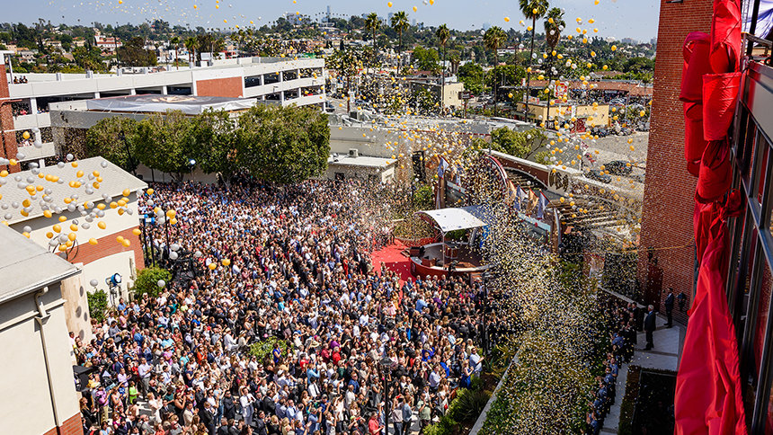Resaltando eso en la gran inauguración hubo elogios de líderes de la comunidad de Hollywood y la Ciudad de Los Ángeles. Leron Gubler, presidente de la Cámara de Comercio de Hollywood, comentó: “Lo que pasa aquí hoy en día lleva consigo un gran peso. Las personas están observando a Hollywood y la gente toma nota de lo que la Iglesia hace. Y ustedes, no sólo están poniendo un punto de anclaje aquí. Sino que están proporcionando oportunidades excepcionales a los escritores, directores y a todo tipo de profesionales creativos para que prosperen en este entorno único. Así que trabajemos juntos para llevar a Hollywood aún a mayores alturas”.