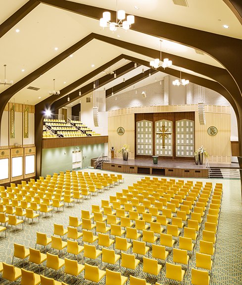 La Capilla masiva de la nueva Iglesia de Scientology del Valley está diseñada para reuniones de la congregación que incluyen Servicios Dominicales, Bodas y Ceremonias de Nombramiento. También albergará eventos comunitarios, abiertos a miembros de todas las religiones. Las instalaciones también incluyen múltiples salas para seminarios y salas de curso, además de un piso completo dedicado a la auditación (asesoramiento espiritual) de Scientology.