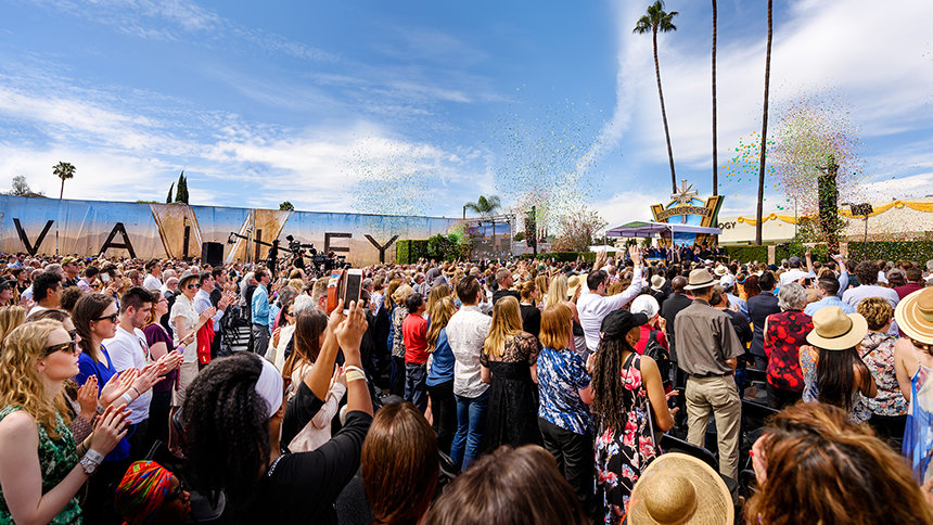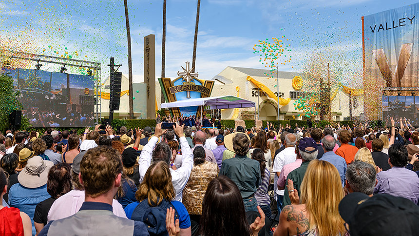 Así fue, el domingo, 19 de Marzo a la 1 p. m., 5 000 Scientologists se reunieron para ser testigos del nacimiento de Iglesia Ideal de Scientology más grande de Norteamérica. Fue una ceremonia acorde con el tamaño, alcance y el contenido del nuevo hogar de Valley, desde una mezcla de partituras clásicas evocando los días dorados del cine, al himno “V de Valley” escrito y preparado especialmente para la ocasión. Los miles de asistentes se pusieron de pie en una jubilosa celebración y aplaudió a cada dignatario apasionado elogiando el gran impacto social de la Iglesia.
