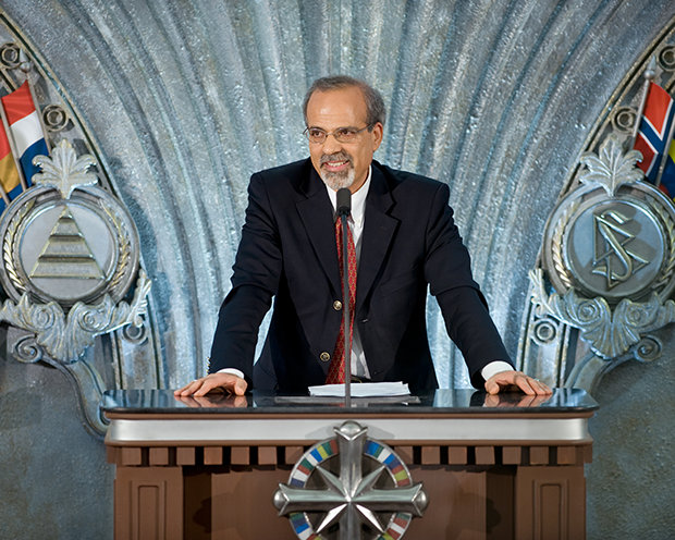 Entre los distinguidos oradores invitados que participaron en la dedicatoria se encontraban el Honorable Hugo Coveliers, Senador del Parlamento Belga; el profesor Abolfazl Beheshti, profesor de Relaciones Internacionales y Economía de la Energía en la Universidad de Lille, Francia; el Honorable Juan Ferreiro, Delegado del Director General para Asuntos Religiosos en el Ministerio de Justicia Español; la Sra. Katalin Szomor, miembro experto de la Comisión de Drogas del Parlamento Húngaro y antigua Coordinadora Nacional sobre Drogas; y el reverendo Christopher Vonck, Rector de la Facultad para el estudio Comparativo de las Religiones en la Universidad de Antwerp.