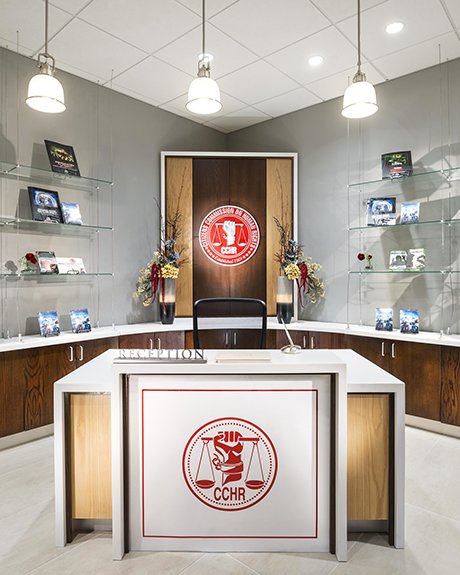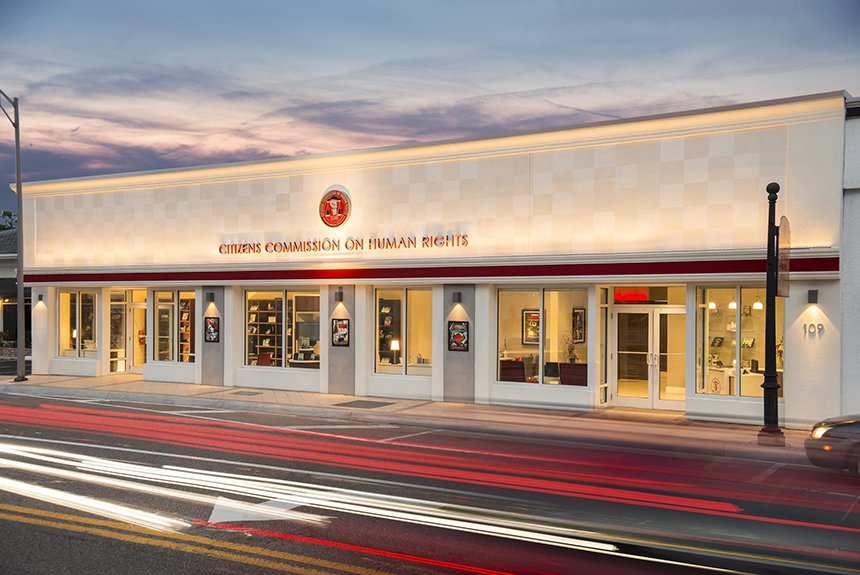 El nuevo centro de CCHR cerca del Edificio de Flag de Scientology en el centro de la ciudad de Clearwater es un elemento vital en un complejo de seis edificios dedicados a los programas patrocinados por la Iglesia sirviendo al área de Clearwater, un símbolo palpitante de la colaboración de la comunidad.