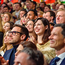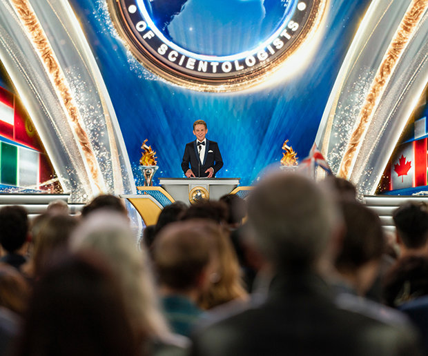 Reunidos de todo el Reino Unido, Europa, EE. UU. y tan lejos como África y Asia, la expectante multitud entró por la alfombra roja a la exquisita Gran Carpa. A medida que el escenario estallaba en luz, que indicaba el comienzo del evento de apertura, el Sr. David Miscavige, Presidente de la Junta del Religious Technology Center, hizo su entrada a una estruendosa ovación de pie, una de duración histórica.