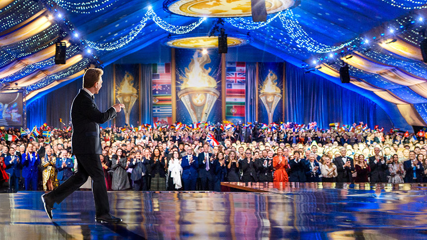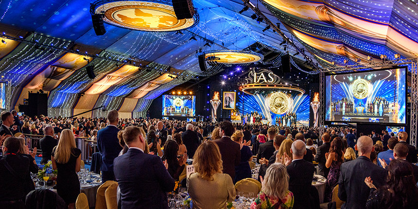 El sábado por la noche, la Gran Carpa llegó a la vida resplandecientemente como el lugar para el Baile de Patrones anual de la IAS. El evento de gala reconoció a los miembros de la IAS de 59 países por su dedicación constante para impulsar el movimiento humanitario de la IAS. La noche adquirió un significado aún mayor dado que, en los cuatro años desde el último Baile de Patrones en Saint Hill, casi 5000 Scientologists se convirtieron en Patrones de la IAS: un más alto que nunca en la historia.
