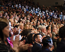 “Nunca ha sido mas notoria” la concurrencia de scientologists, dijo el señor Miscavige. “Nunca más abiertamente evidente. Nunca ha estado más cerca de la consciencia de 7 mil millones de personas en la Tierra. Así que, sin exagerarlo, sin llevarlo más allá del límite, pero la verdad es que LRH está en todas partes esta noche”.
