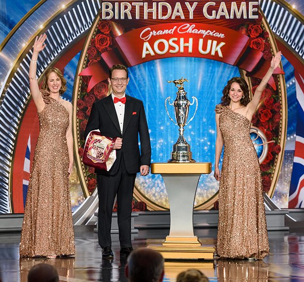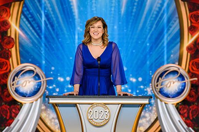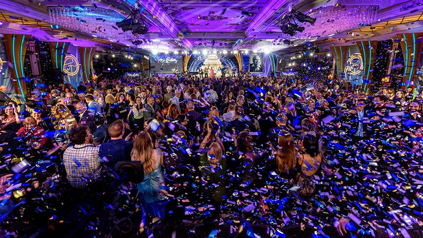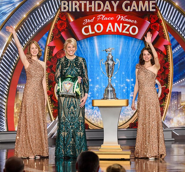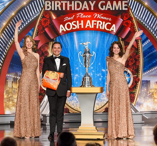 Luego llegó el momento de anunciar a los campeones del Juego de Cumpleaños de LRH. El escenario se transformó en un círculo de ganadores rodeado de rosas, con brillantes luces, sedas y trofeos relucientes. El Juego de Cumpleaños sigue la tradición de honrar al Sr. Hubbard con el regalo de la expansión en cada Iglesia de Scientology.