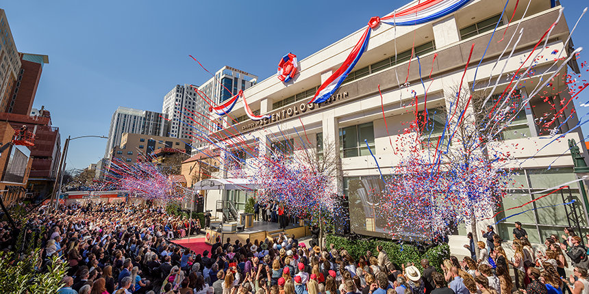 Luego, solo dos días después y a unos 3200 kilómetros de distancia, en un día de invierno en Chicago de 21 grados, inusualmente cálido para la temporada, en lo que a menudo se llama “La Mejor Gran Ciudad de Estados Unidos”, el Sr. Miscavige se unió a miles de Scientologists para celebrar la inauguración de la tercera Org Ideal en nueve días. El monumento del centro de la ciudad bellamente restaurado tiene más de un siglo y se encuentra en el Printer’s Row, el centro histórico de la industria de impresión del Medio Oeste.