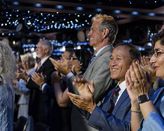 “Desde la última vez que nos reunimos, nuestro sistema solar de Iglesias ahora incluye: Budapest, Hungría; Harlem, Nueva York; San Diego, California; y, los confines de nuestro mundo terrenal en Auckland, Nueva Zelanda”, dijo él, antes de pasar al detalle de las inauguraciones de las Iglesias más recientes en el Valle de San Fernando, California; Miami, Florida; y Copenhague, Dinamarca.