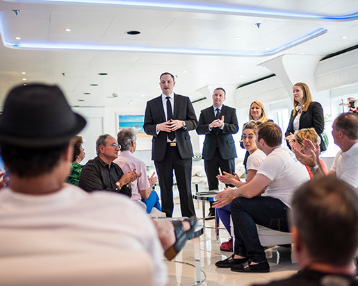 Cuando el Sr. Miscavige dio la bienvenida a la audiencia la primera noche, él también rindió homenaje al Freewinds, cuya tripulación, incluyendo cinco capitanes y 133 expertos en supervivencia, ha acumulado la asombrosa cifra de 5,000 años de experiencia combinada en el mar. El barco, dijo, ha sido prácticamente reconstruido desde su Viaje Inaugural, haciéndolo “el barco más seguro de los siete mares”.