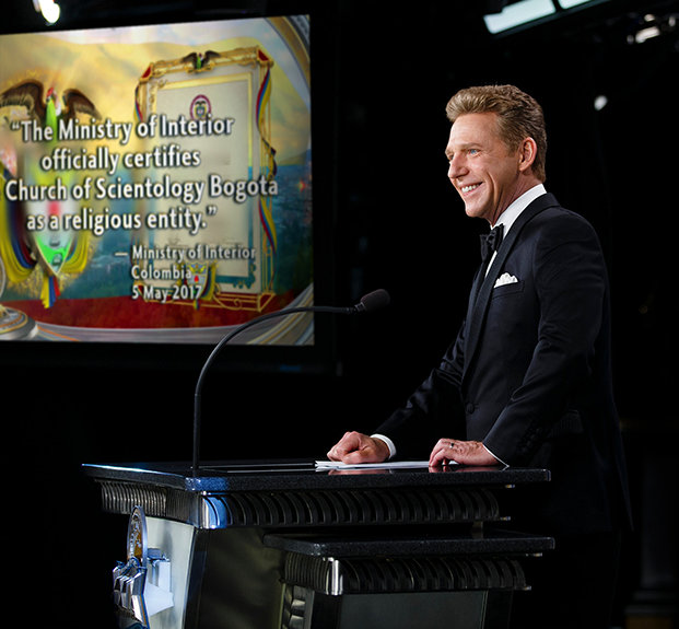 Pero, aún así, ese no es el fin de la historia. Porque, menos de una década después de que el Freewinds fondeara por primera vez en Cartagena, el Sr. Miscavige declaró el siguiente logro épico: que el 5 de mayo de 2017, la nación de Colombia otorgó a la Iglesia de Scientology total reconocimiento religioso.