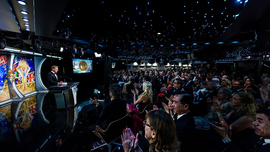 Los pasajeros a bordo para el Viaje Inaugural también asistieron a un evento formal honrando a la Asociación Internacional de Scientologists (IAS) y su compromiso estelar no solo de apoyar y proteger la religión, sino también de acelerar el mejoramiento de la humanidad, a través de las innumerables campañas humanitarias internacionales. Estas incluyen: