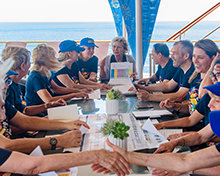 Los pasajeros se reunieron en equipos continentales e incluso por ciudad; cada uno de los cuales se alineó al único propósito de construir Iglesias en nombre de su congregación y comunidad. Era una oportunidad única y lo que un pasajero describió como “completamente fenomenal, edificante e inspirador”. O como otro remarcó: “Esto hizo que fuera muy claro adónde tenemos que ir. Ayuda a unir al grupo y a llevarlo a cabo juntos”.