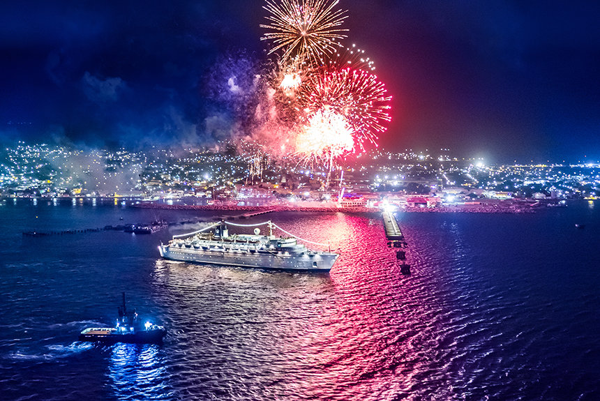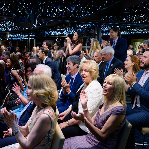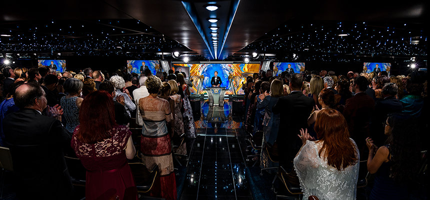 El primer puerto de escala en las noches de celebración fue el Freewinds en sí. El legendario barco combina la competencia, la destreza náutica y una misión humanitaria, y la noche lo mostró con detalle apasionado.