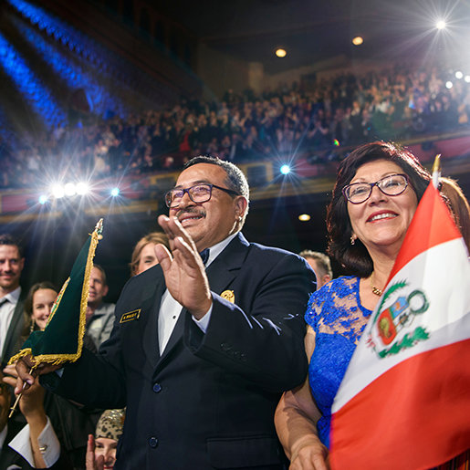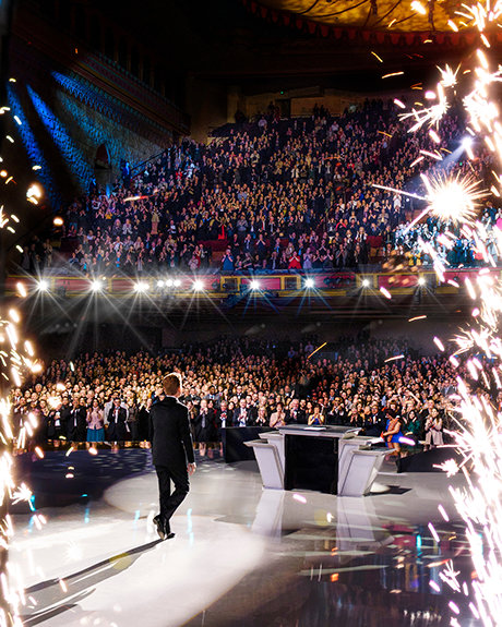 Donde, mientras un estruendoso aplauso reverberó en el Auditorio de Shrine lleno hasta su capacidad, la celebración de la noche trascendió a un tono de triunfo. Así fue, a medida que se acercaban los momentos finales de la década más trascendental de la Iglesia, el Sr. Miscavige dejó a todos con un mensaje final: