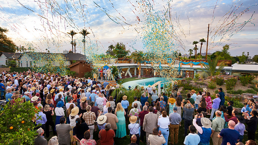 En una cálida tarde de sábado en el desierto, ese edificio histórico se abrió de nuevo, renacido como un Sitio Histórico de L. Ronald Hubbard. Un lugar de importancia internacional, aquí es “donde el futuro cambió para siempre”, dijo el Preservacionista de la Iglesia de Scientology, quien ofició el evento y supervisó la restauración histórica del sitio.